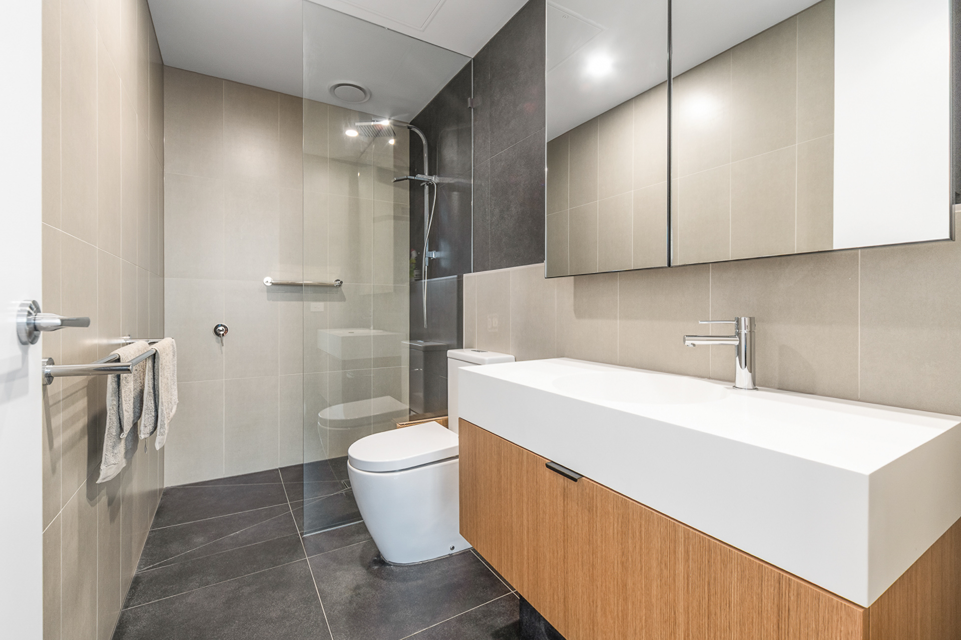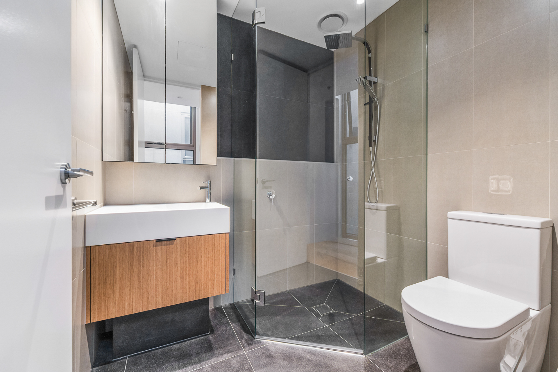 Two spacious bedrooms, complete with reverse cycle heating + cooling, new carpets & paint. With the master bedroom hosting a stylish ensuite & walk in robe.